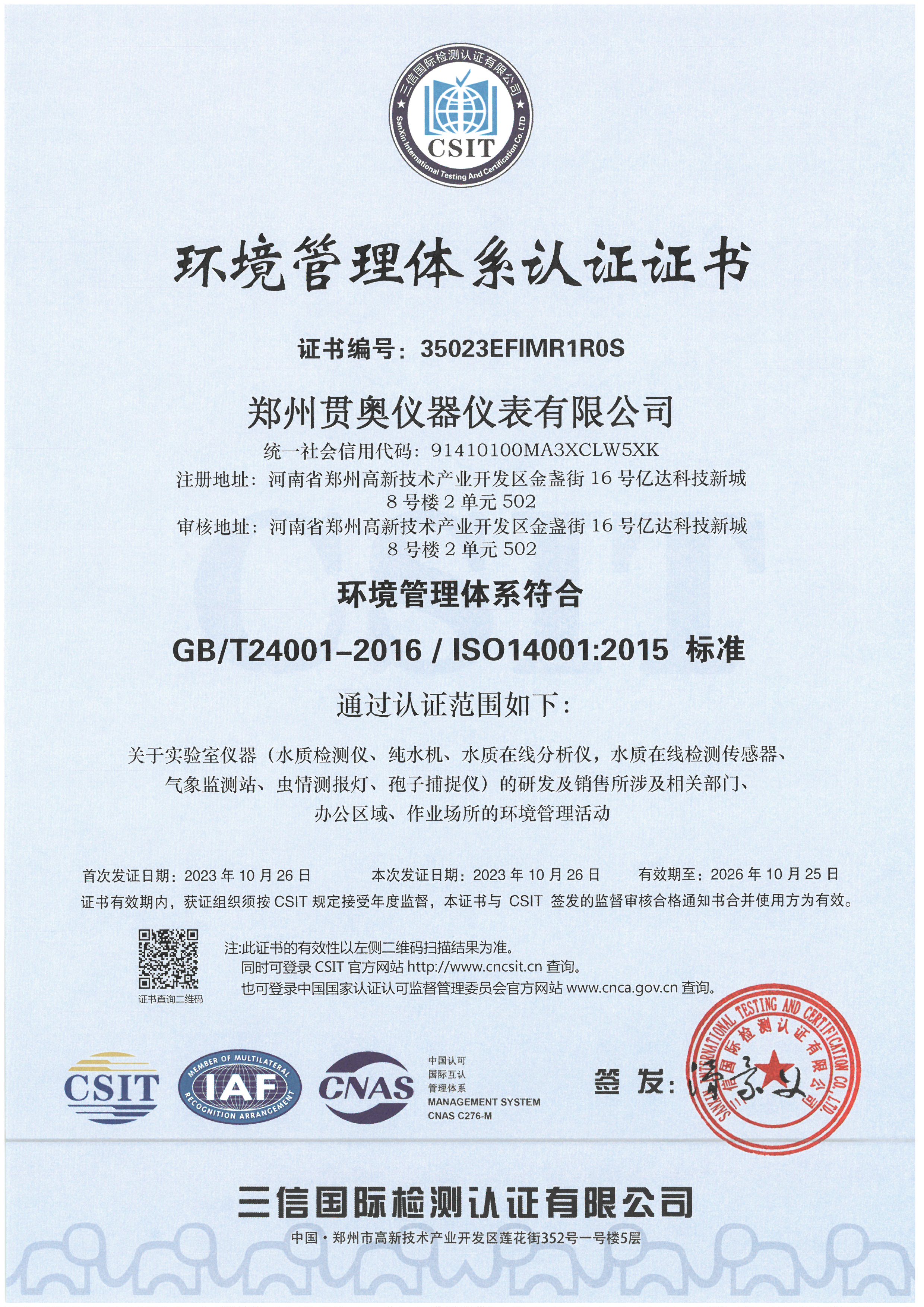 貫奧儀器位于鄭州高新技術(shù)產(chǎn)業(yè)開發(fā)區(qū),是高新技術(shù)企業(yè)、行業(yè)AAA級信用企業(yè),已通過GB/T19001:2016質(zhì)量管理體系認證、GB/T24001:2016環(huán)境管理體系認證和GB/T45001:2020職業(yè)健康安全管理體系認證,擁有多項證書,產(chǎn)品已通過河南省電子信息產(chǎn)品質(zhì)量監(jiān)督檢驗院檢測,并出具了相關(guān)檢驗報告,我們以雄厚的研發(fā)實力、過硬的產(chǎn)品質(zhì)量、完善的售后服務(wù)為客戶提供分析檢測技術(shù)解決方案,擁有過硬的分析儀器生產(chǎn)技術(shù)和整體的水質(zhì)監(jiān)測解決方案。