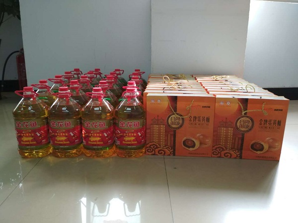 今年國慶節(jié)和中秋節(jié)正好是趕到了一起,所以公司領(lǐng)導(dǎo)也是提前準(zhǔn)備了節(jié)日福利,為大家送去祝福。今年的福利包括一桶食用油和一盒金牌蛋黃酥月餅,充分體現(xiàn)了公司領(lǐng)導(dǎo)對員工的關(guān)心和祝福。