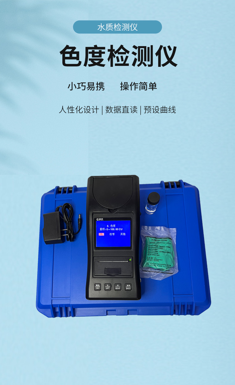 貫奧色度檢測(cè)儀可快速準(zhǔn)確測(cè)定地表水、地下水、城市污水及工業(yè)廢水中色度指標(biāo),濃度直讀;可廣泛用于水廠、食品、化工、冶金、環(huán)保及制藥行業(yè)等部門(mén)。儀器是由單個(gè)的固定波長(zhǎng)固定用途的分光光度計(jì)糅合而成的,采用分光光度法原理對(duì)各參數(shù)進(jìn)行測(cè)量,在儀器中建立不同參數(shù)的濃度顯色程度與吸光度的線性曲線,儀器通過(guò)對(duì)顏色的辨別,得出被測(cè)水樣的濃度。本儀器采用全中文菜單,操作簡(jiǎn)易易懂,使用方便快速測(cè)量準(zhǔn)確度高。
